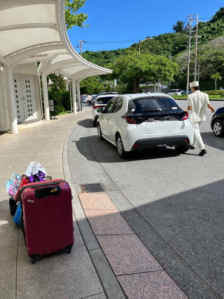 レンタカーでホテル前に到着すると、エースJTBに付いているバゲージアップ&ダウンで車からの荷物を運んでくれました。